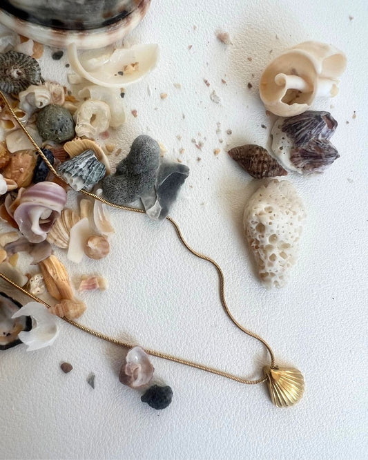 Clam Shell Skinny Snake 18K Gold plated Necklace - 18 Inch