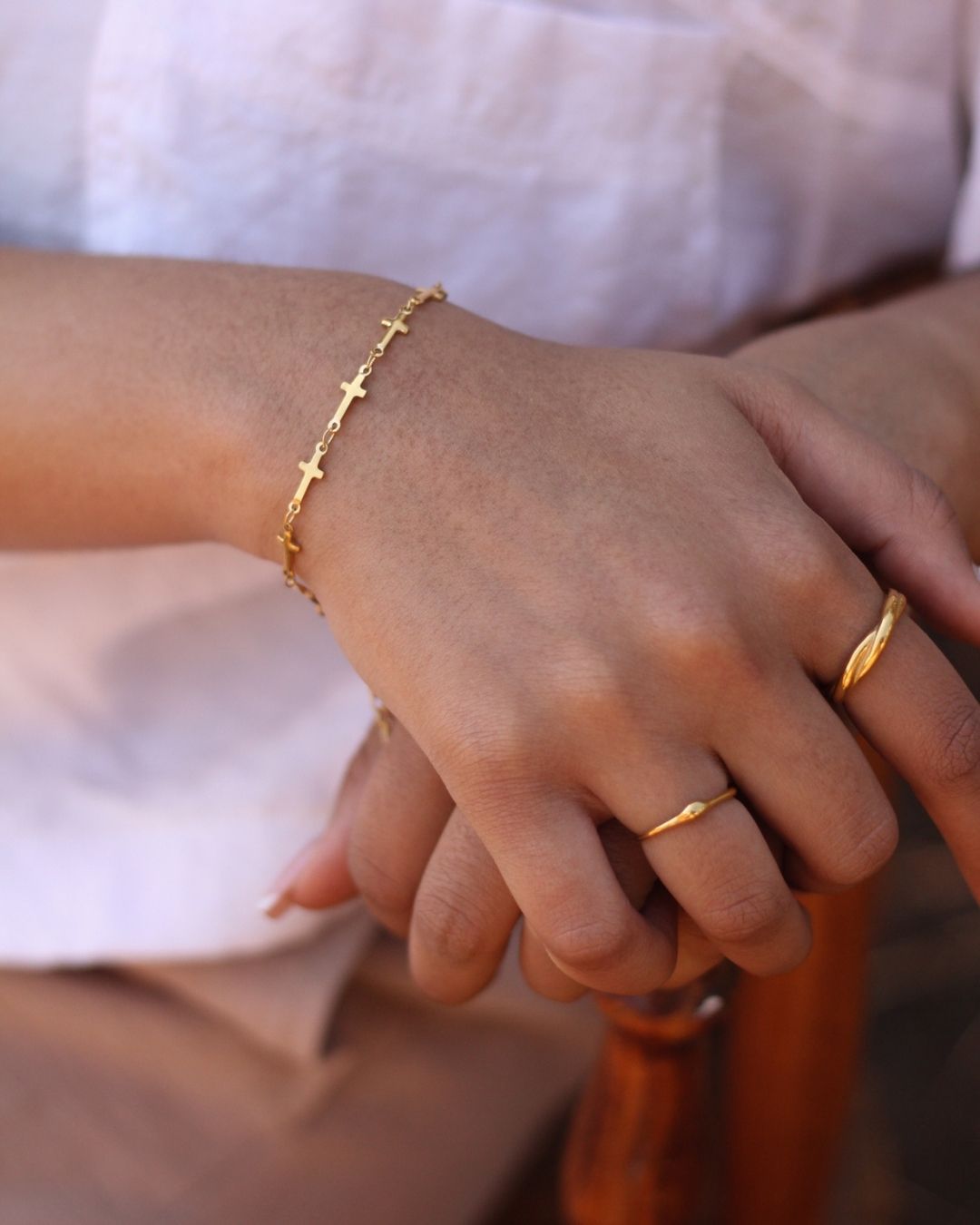 - Cross Chain 18K Gold Plated, Stainless Steel PVD Bracelet